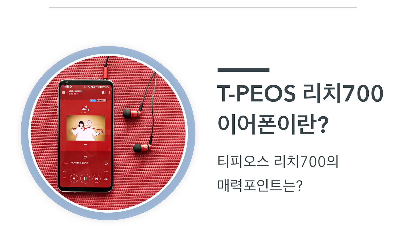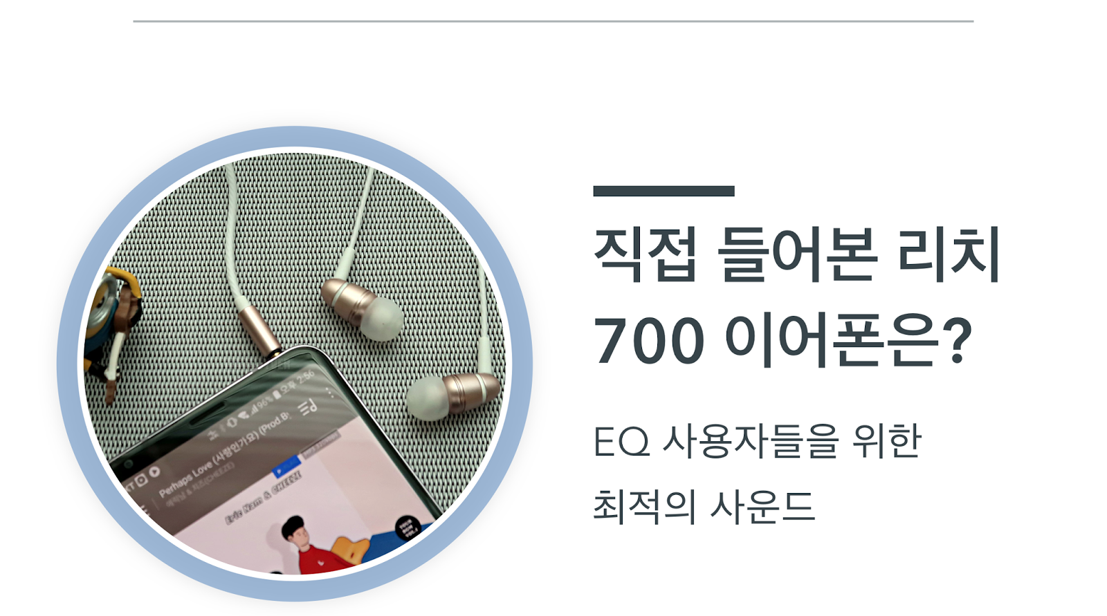 그러나, 가성비만으로 구입하라고 추천하는 것은 테이프나 CD가 저렴하니까 구입하라는 말과 같을지 모른다. 그래서 오늘은 티이오스 리치700 이어폰의 진짜 맛은 무엇인지, 사운드는 어떠하고 사용하기에 아쉬운 점은 없었는지를 살펴보기로 했다.