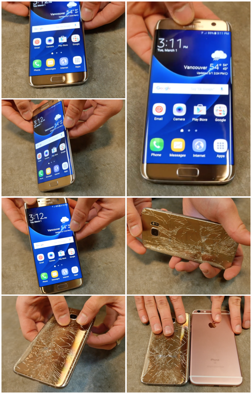 먼저 언급해야 할 점은 갤럭시S7은 전면과 후면이 모두 유리라는 점이다. 거기다 엣지 모델은 사실상 옆면까지 유리로 되어 있음을 뜻할 것이다. 즉, 위험 요소가 아이폰 대비 2~3배는 더 많다는 이야기.