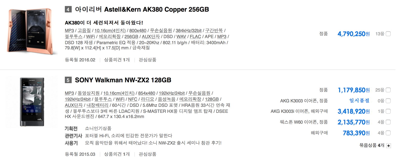 현재 판매되고 있는 고음질 플레이어의 경우는 대부분 24bit를 지원하고 있다. 그럼에도 가격은 40만원대에서 수백만원에 이르는 경우가 대부분. 장점이라면 독자적인 재생이 가능하다는 것이지만 가격이 상당하다는 단점이 있었다.