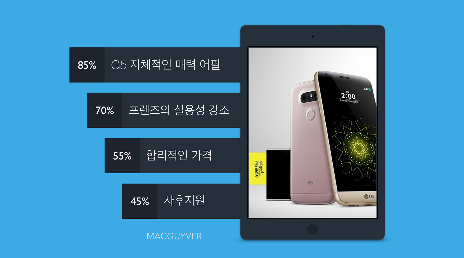앞으로도 지속적으로도 갖고 싶은 프렌즈를 내놓고, 이벤트를 열게 된다면 소비자들의 관심도 얻을 수 있고, G5에 대한 탄탄한 마니아층도 만들어지지 않을까 하는 기대를 해볼 수 있을 것 같다. - MACGUYVER.