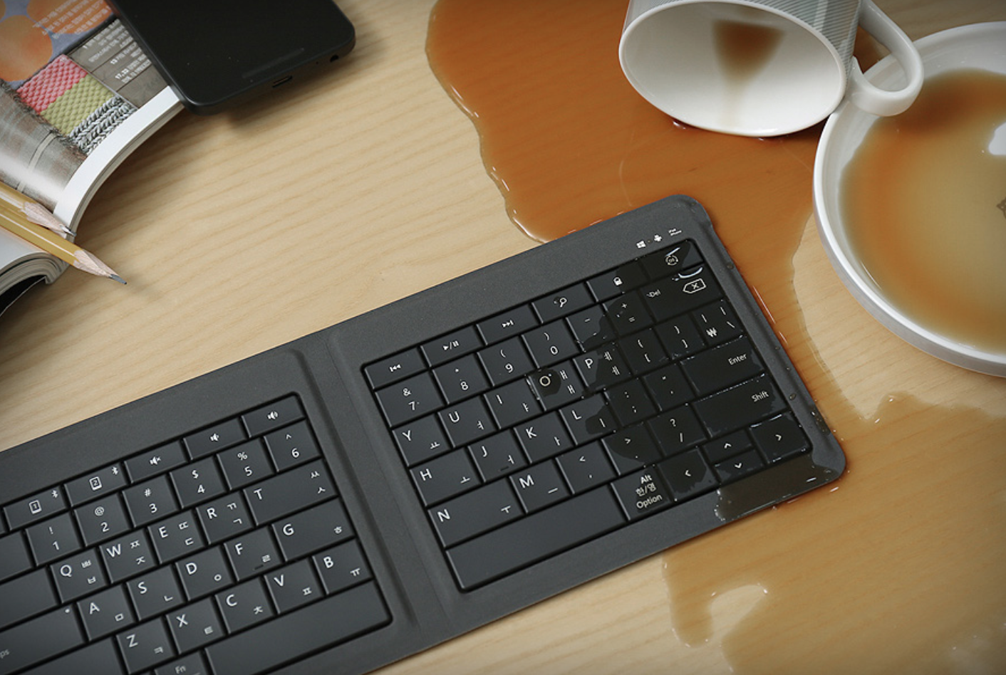 처음 만나 본 MS 유니버셜 키보드는 우선, 매우 가벼웠고 재질이 특이한 제품이었다. 매우 얇으면서도 있을 것은 다 갖춘 제품이기 때문. 심지어 생활 방수도 지원해서 물이나 커피를 쏟아도 닦아내면 그만이다.