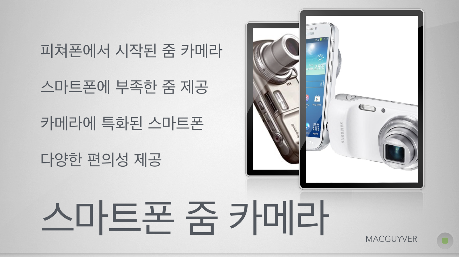 중국 기업들의 끊임없는 견제와 기술 추격으로 나날이 위태로워지는 스마트폰 시장 속에서 삼성과 엘지가 색다른 묘안으로 계속해서 우리의 곁에 있어주기를 기대해봐야겠다. - MACGUYVER.