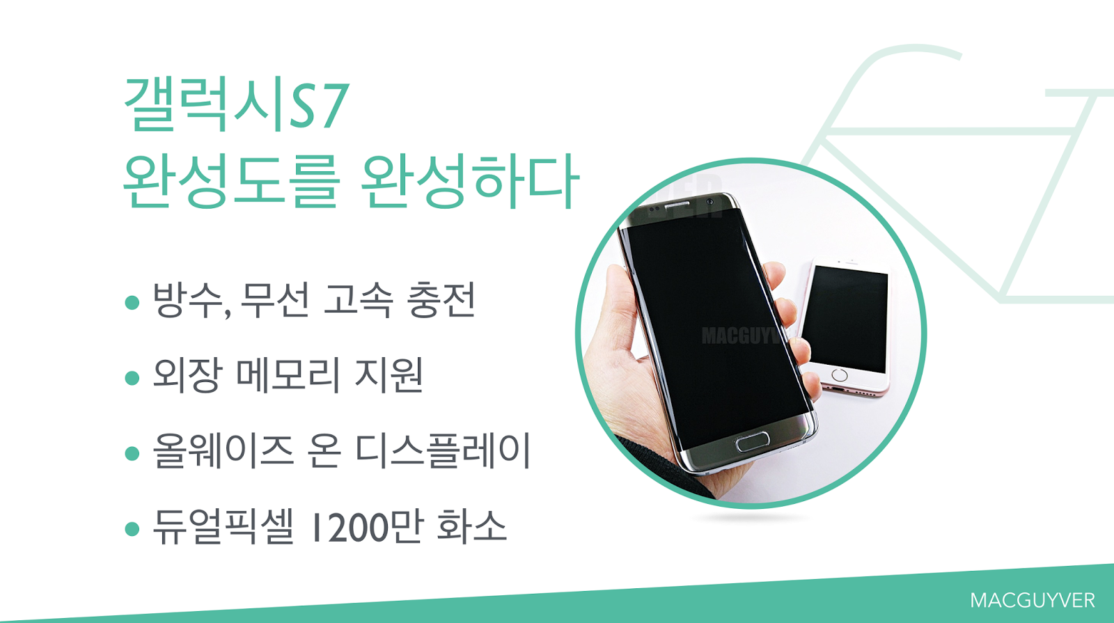 반짝이는 갤럭시S7과 은은하게 빛나는 아이폰6s, 뒷면에 자꾸만 남게 되는 지문을 방지하기 위한 필름이 은은하게 빛나는 갤럭시S7 ▼