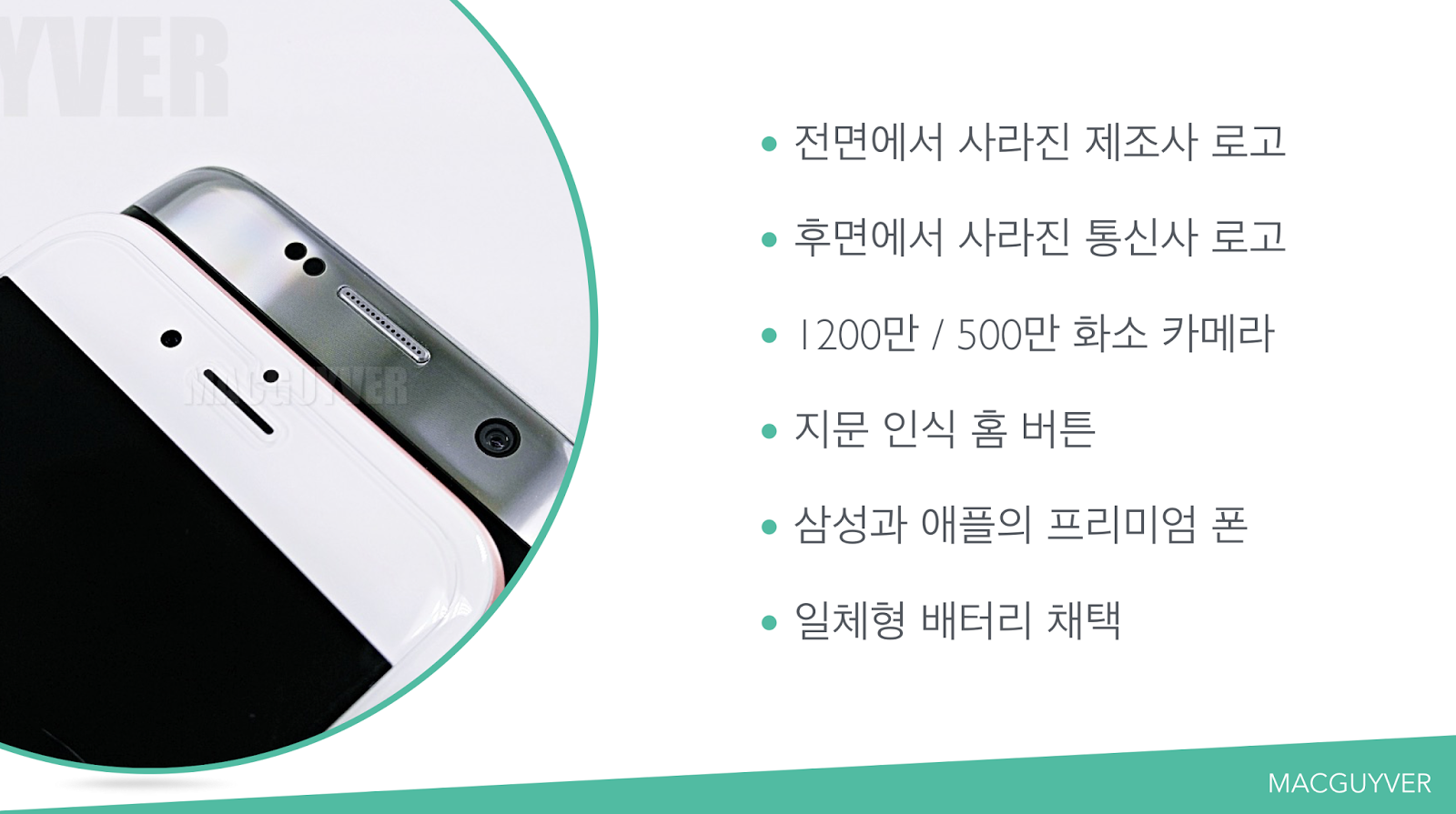 카툭튀가 효과적으로 줄어들며 더욱 플랫해진 갤럭시S7, 두 기기 모두 제조사 마크만이 남아 있다 ▼