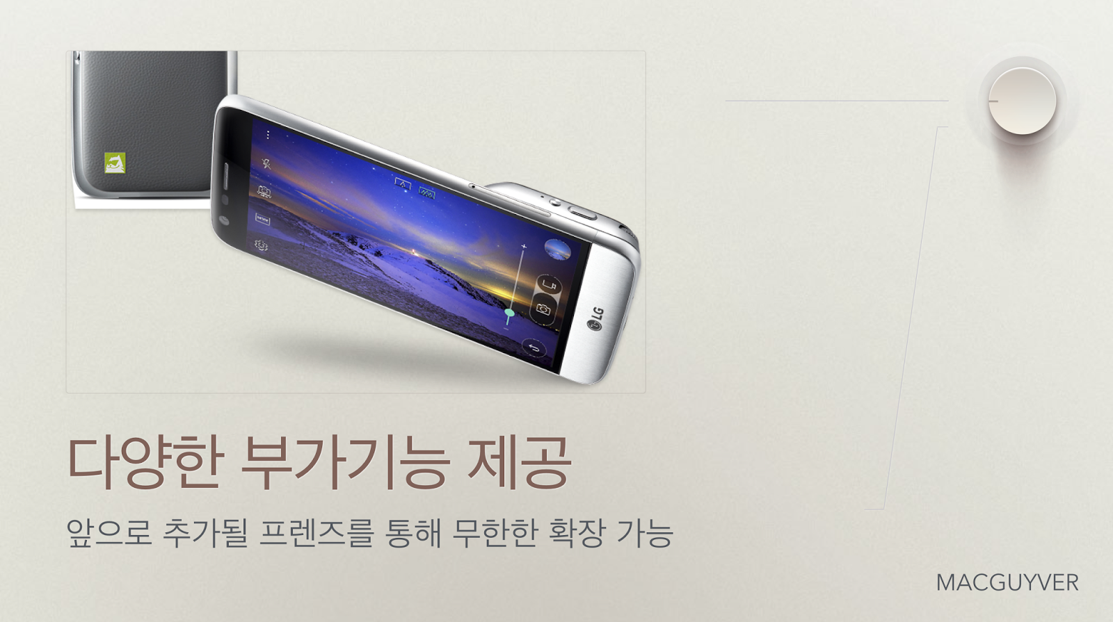 하지만, 그럼에도 G5는 무한한 가능성을 가지고 있다. 모듈 교체만으로도 전혀 다른 폰이 될 수도 있으며, 2개의 카메라를 통해 더 선명하게 혹은 더 넓게 사진을 담을 수 있기 때문. 이번만큼은 엘지 마케팅팀이 제대로 일을 해주기를 바란다. - MACGUYVER.