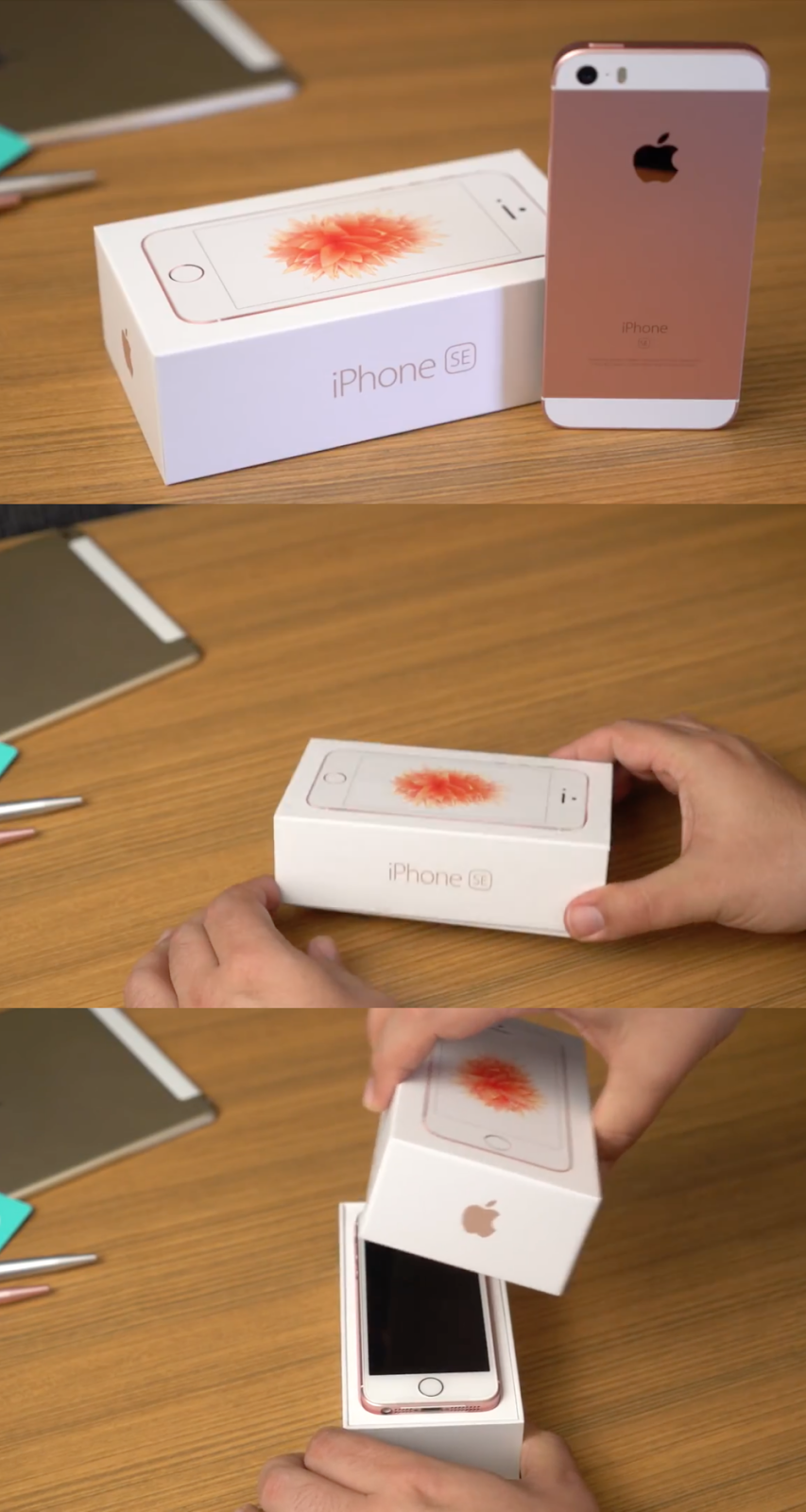 아이폰SE의 포장 방식은 이전 아이폰 시리즈와 같다 ▼