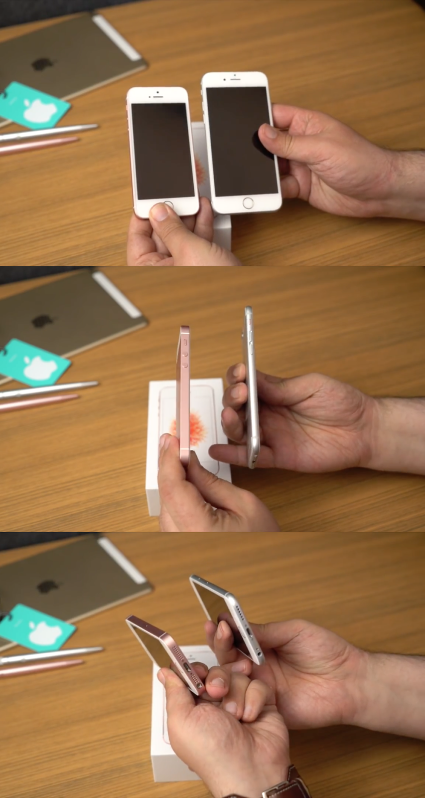 아이폰6s와 비교하자면 각진 디자인과 둥근 디자인의 차이가 드러난다 ▼