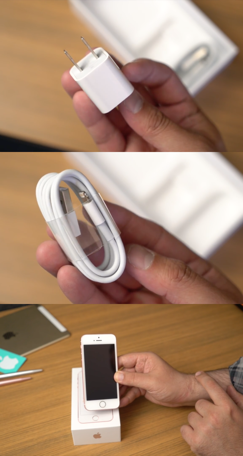 아이폰SE를 개봉하게 되면 별다를 것 없는 패키징을 만나볼 수 있다. 이어팟을 비롯해 충전 케이블과 어댑터가 나타나며, 특별할 것 없는 소소한 흰색의 패키징이 눈에 들어온다. 이전 아이폰의 포장과 다르지 않은 것이다.