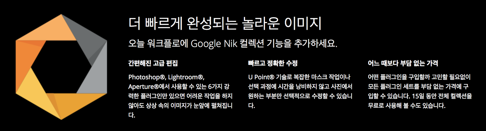 역시 구글이다. 통 큰 구글은 이번에도 소프트웨어를 누구나 사용할 수 있도록 배포하면서 더욱 많은 사람들이 혜택을 누릴 것으로 보인다. 이번에 무료로 배포한 앱, 즉 소프트웨어는 Nik이라 불리는 사진 편집 전용 플러그인이다. 그것도 무려 7종이나 된다.