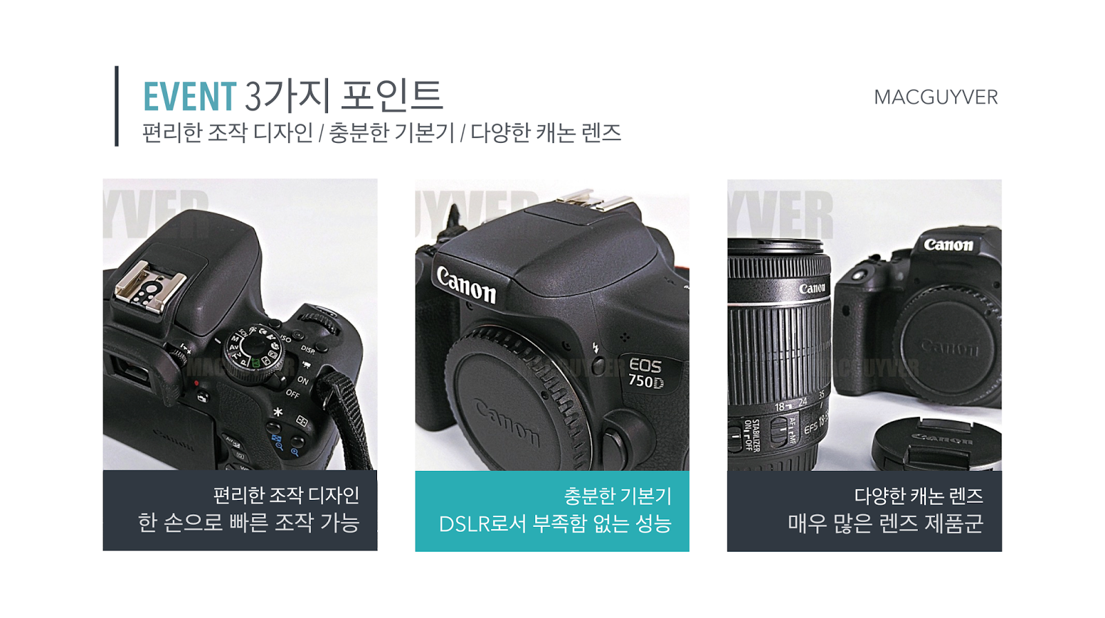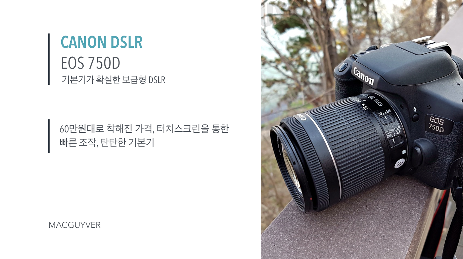 캐논만이 가진 특유의 색감을 원하고, 또한 미러리스가 아닌 DSLR을 경험해보고 싶은 분들에게 있어서 가격적인 부담까지 걷어낸 EOS 750D는 분명 좋은 선택이 될 것으로 보인다. 올봄, 특별함은 없지만 아쉬울 것도 없는 기본기를 가진 EOS 750D를 통해 추억을 남겨보는 것은 어떨까 한다. - MACGUYVER.
