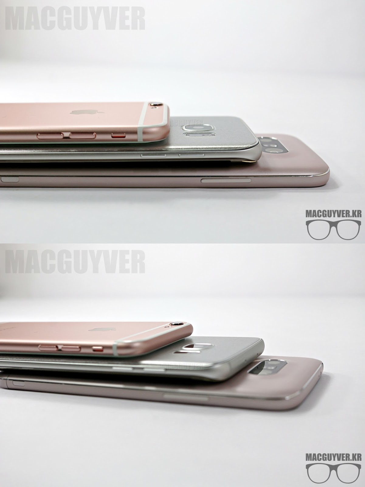갤 럭시노트5와 비교하자면 한없이 부드럽고 더욱 둥글둥글하지만 아이폰6s와 G5를 놓고 함께 비교하자면 갤럭시S7은 한없이 남성스럽다. 아이폰6s와 G5 둘 다 핑크 색상이라서 그런 것일지도 모르겠지만, 아무튼 디자인을 파헤쳐 봤다.