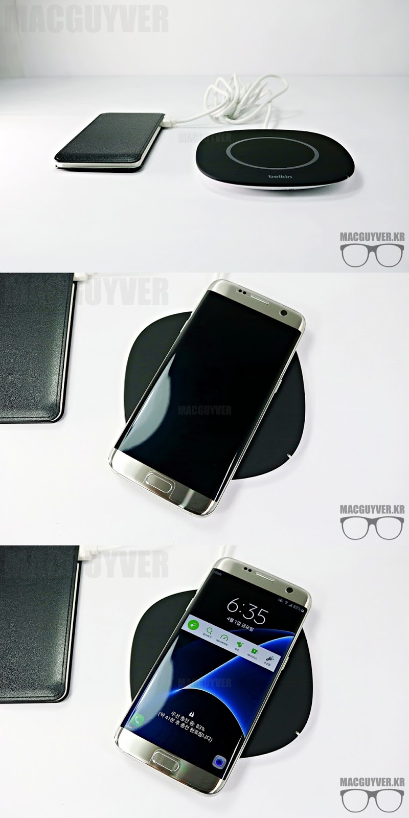 갤럭시S7은 알려진 대로 전후면이 모두 유리 재질로 되어 있어서 스크래치에 민감한데, 그런 점에서 자주 사용하게 될 무선 충전 패드의 재질은 매우 중요할 수 있다. Qi 인증을 받은 벨킨 무선 충전기는 갤럭시S7을 충전하는데 문제가 없어 보였다.