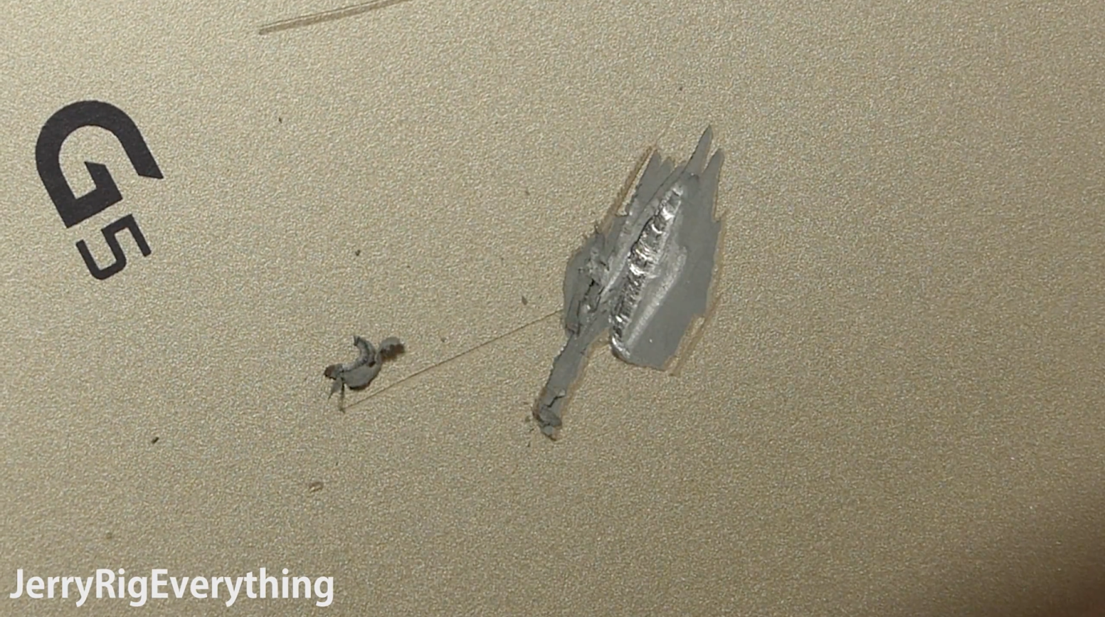 그래서 실제 메탈인지를 실험한 영상이 공개되었는데, G5의 뒷면 커버를 칼로 긁어본 것이다. 결과는 어땠을까? 황당하게도 처음 드러난 재질은 플라스틱이었다. 플라스틱이 칼에 의해 하나씩 벗겨졌는데, 이후 아래로는 알루미늄이 나타났다.