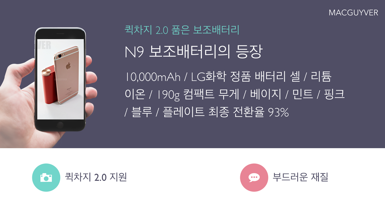 더구나 보조배터리 자체를 충전하는데 8~10시간 이상 소요되는 제품도 많기 때문에 이로 인한 불편함도 상당 부분 감수할 필요가 있었다. 하지만 이제는 퀵차지 2.0 기술이 더해진 N9 보조배터리로 편의성이 높아졌다.