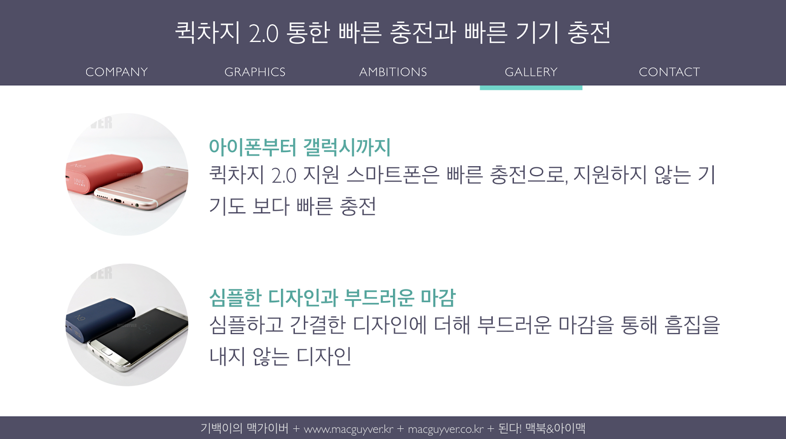 자신에게 맞는 보조배터리를 선택해서 밖에서도 더욱 스마트한 라이프를 즐겨 보는 것은 어떨까? 이왕이면 더 가볍고 용량이 크면서도 더 빠른 충전이 되는 녀석으로. - MACGUYVER.