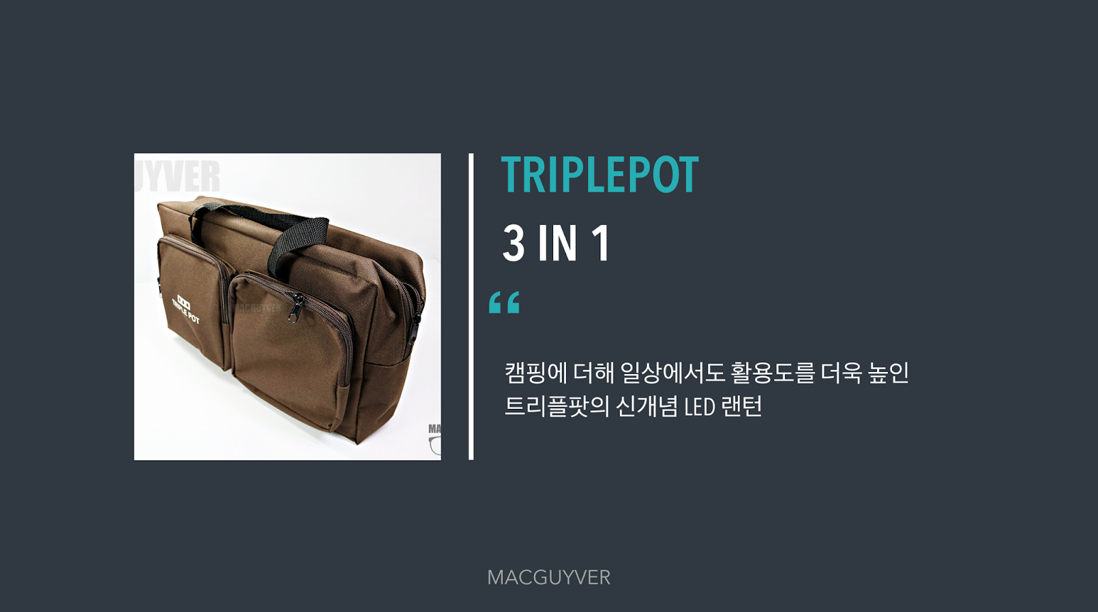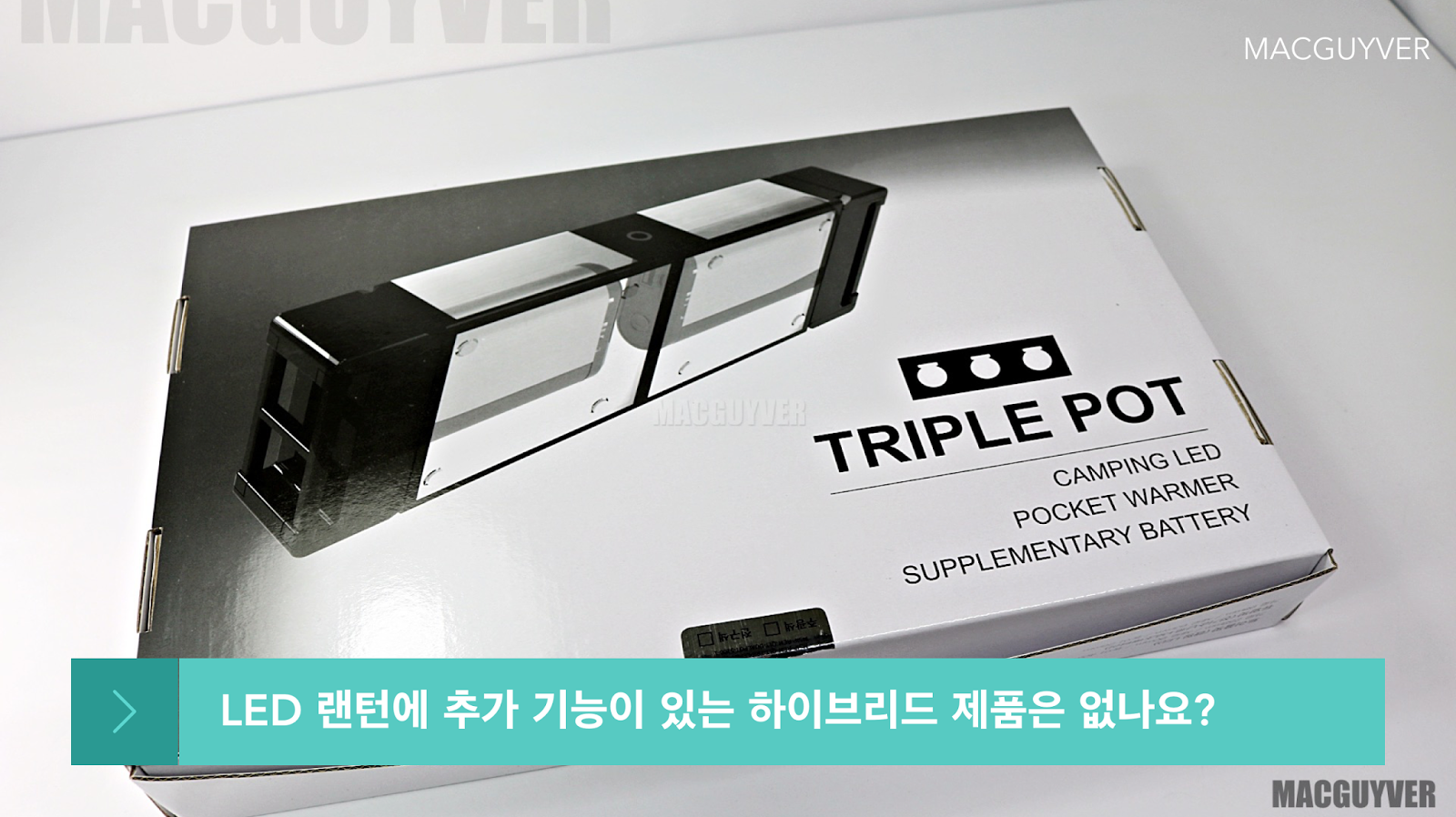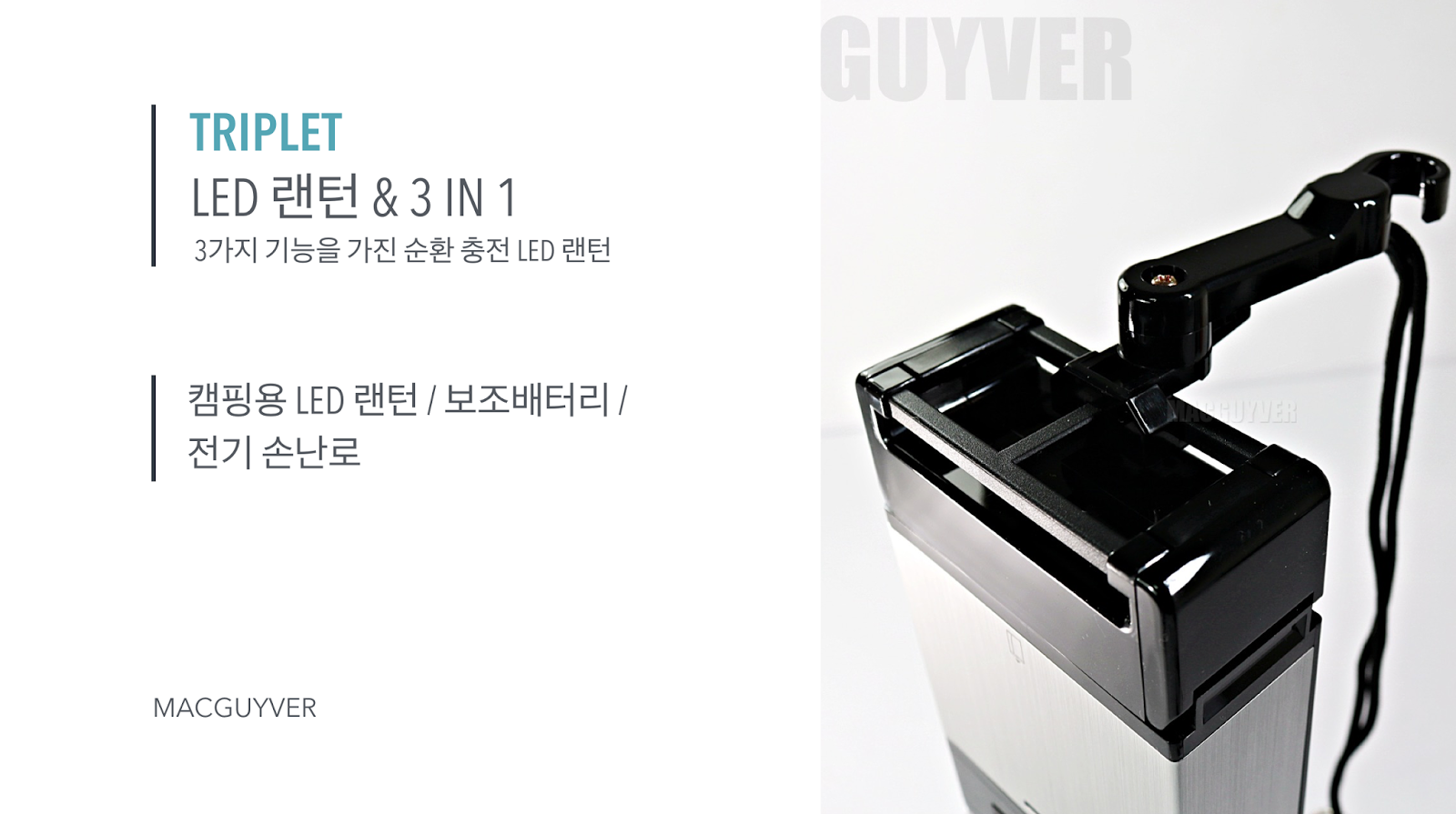 평소에 캠핑을 자주 떠난다면, LED 랜턴을 찾고 있었다면, 이 제품은 좋은 대안이 될 것 같다. 비슷한 가격으로 일석삼조의 혜택을 누릴 수 있기 때문. 올봄에는 하이브리드 기능을 가진 트리플팟으로 더 즐거운 여행을 떠나보는 것은 어떨까 싶다. - MACGUYVER.