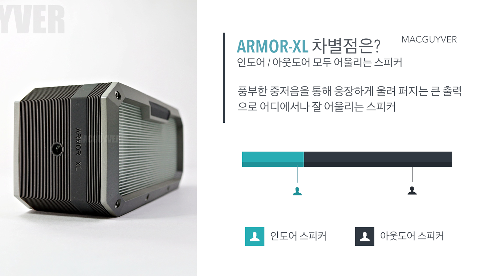 Armor-XL을 통해 올여름 캠핑이나 여행에서도 마음 놓고 음악을 들어보는 것은 어떨까? 바닷가 모래사장 위에도 마음 편히 올려두고, 갤럭시S7과 함께, 혹은 스마트폰을 넣은 방수팩과 함께 사용한다면 더없이 좋은 단짝이 되어줄 것 같다. - MACGUYVER.
