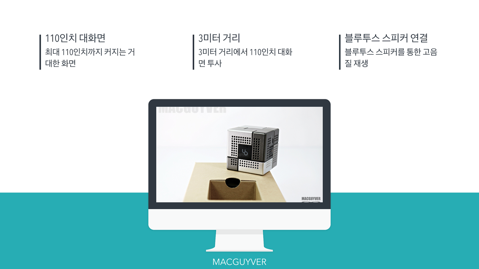 현재로서는 100인치를 넘어서는 TV를 구입하려면 엄청난 비용이 소모되지만, 이 작은 녀석은 3미터라는 공간만 있으면 어디든 극장으로 만들어주기 때문에 친구들과 함께 즐기기에도 더없이 좋은 제품인 것 같다.