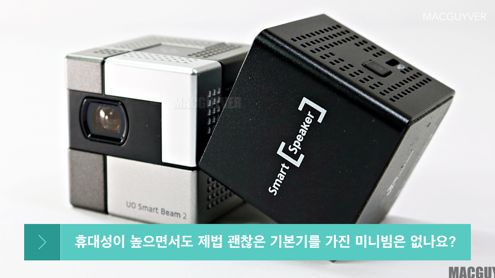 그렇다면 해법은 없을까? 그러니까, 스마트빔으로서 충분히 휴대성을 높이면서도 화질이나 밝기를 개선한 제품은 없을까 하는 것. 그래서 찾아본 UO 스마트빔2는 상당히 개선된 성능을 가진 제품이었다.