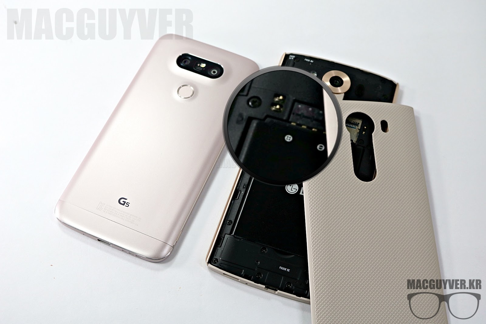뒷면 전체를 열어야 하는 방식의 V10과 모듈 방식의 G5 ▼
