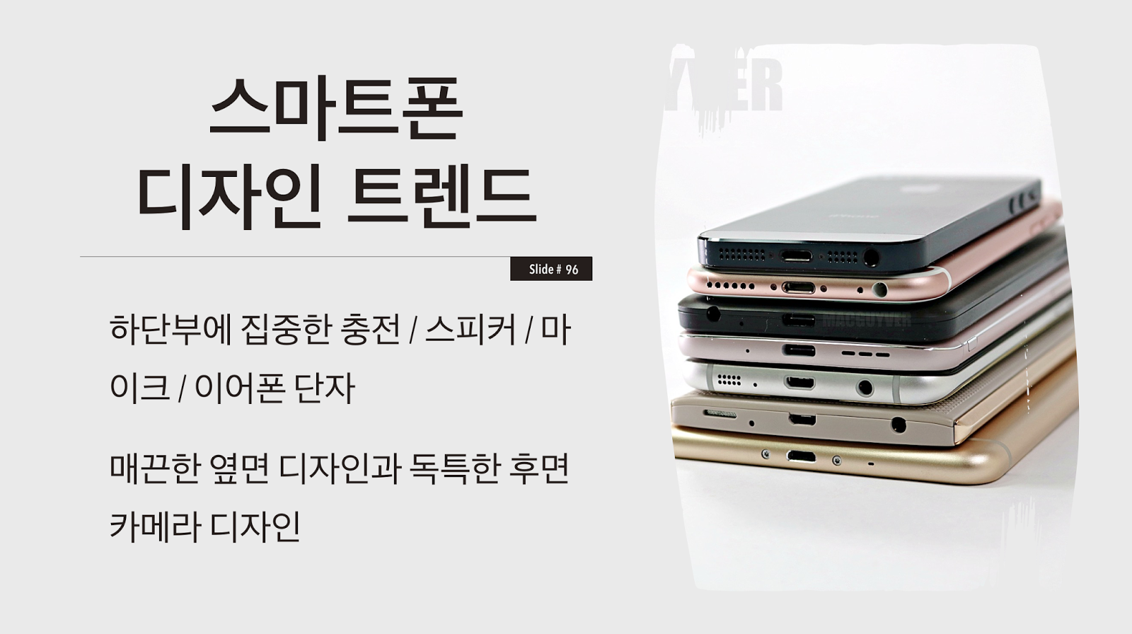 하지만 시대는 변했고, 스펙은 상향 평준화가 되었으며 스마트폰에서 스펙은 더 이상 구매 시 첫 번째 요구 조건이 아니게 되었다. 당연하리만치 스펙이 높아진 스마트폰에서 더 중요한 것은 디자인으로 넘어간 것이다.