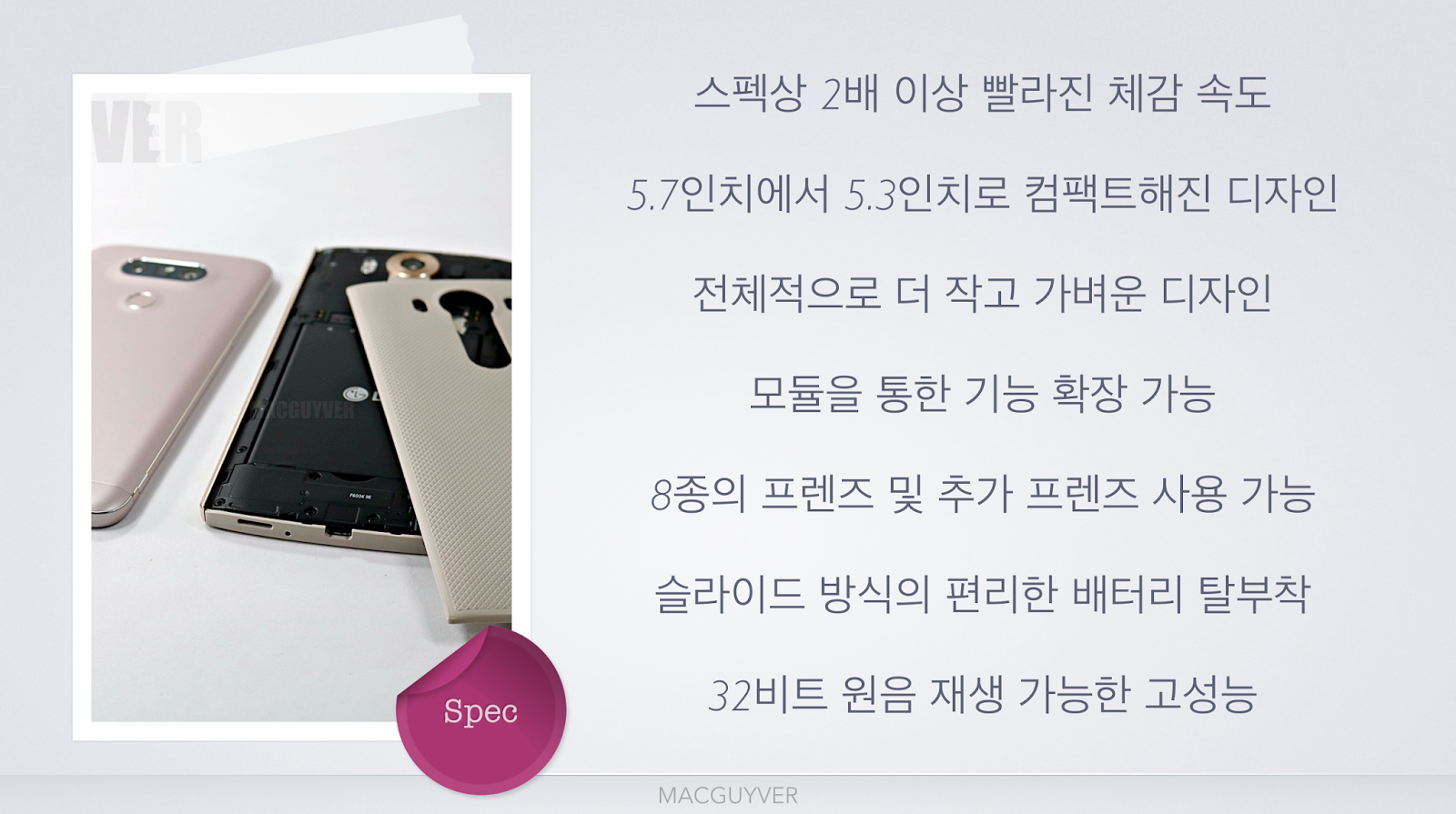 하지만 서로의 장단점이 있고, V10만이 가진 매력도 있는 만큼, 자신이 원하는 것이 무엇인지에 따라서 선택하는 것이 좋을 것 같다. V10과 G5를 모두 사용해본 필자로서는 두 기기 모두 충분히 만족스러웠기 때문이다. - MACGUYVER.