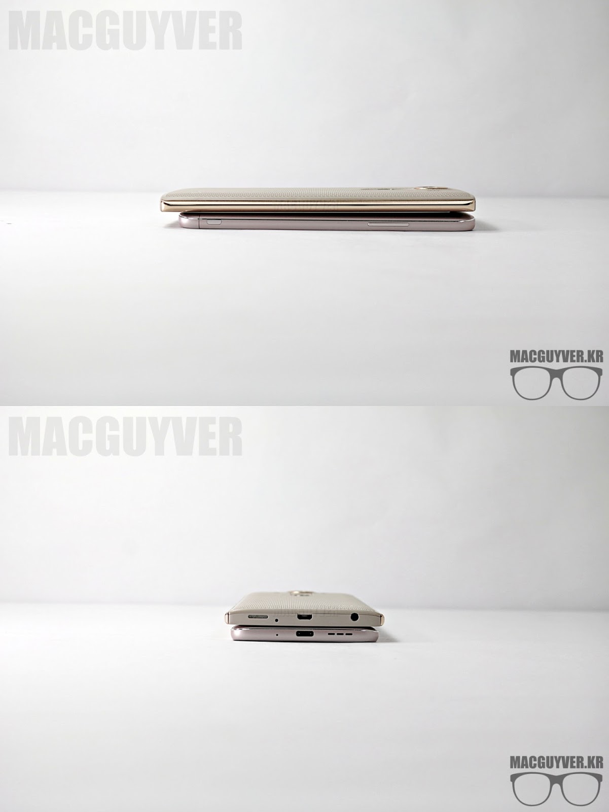 우측면과 상단 디자인 차이, G5의 상단부 이어폰 단자가 눈에 띈다 ▼