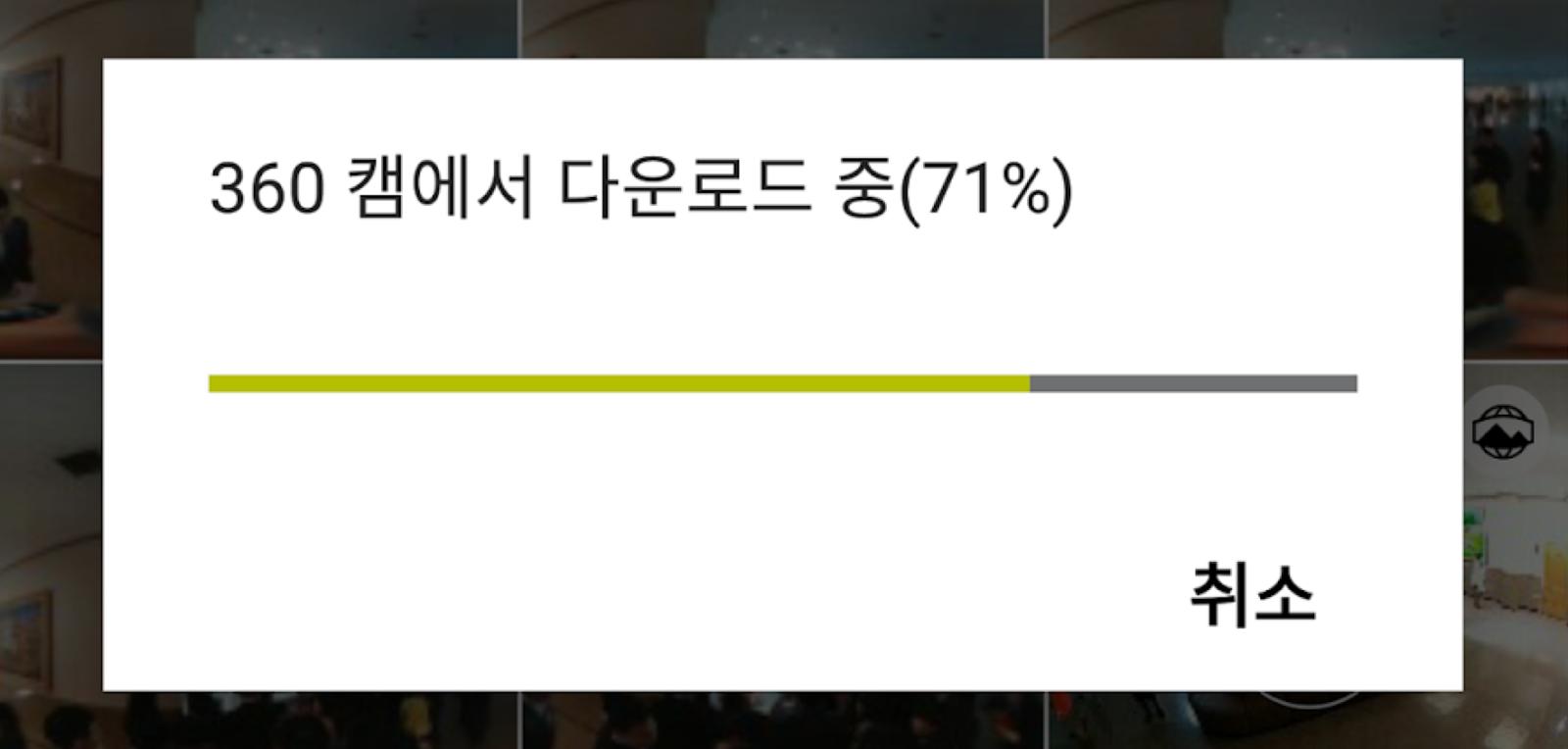 즉, 360캠으로 촬영한 이미지나 사진은 자동적으로 360캠 내부에 있는 메모리에 저장이 된다. 그리고 이것을 무선 연결로 G5에서 보여주는 것인데, 사진은 바로 보여주는 반면, 동영상은 G5로 옮기는 과정이 필요했다.