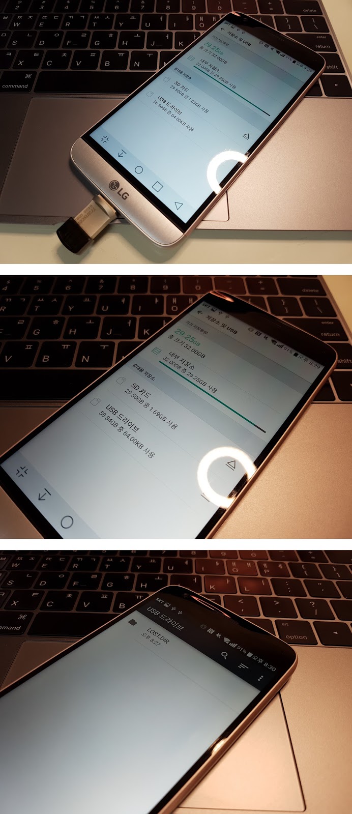 G5에 꽂을 경우 아래 사진처럼 연결 정보가 나타나고, 외장 메모리처럼 사용이 가능하다 ▼