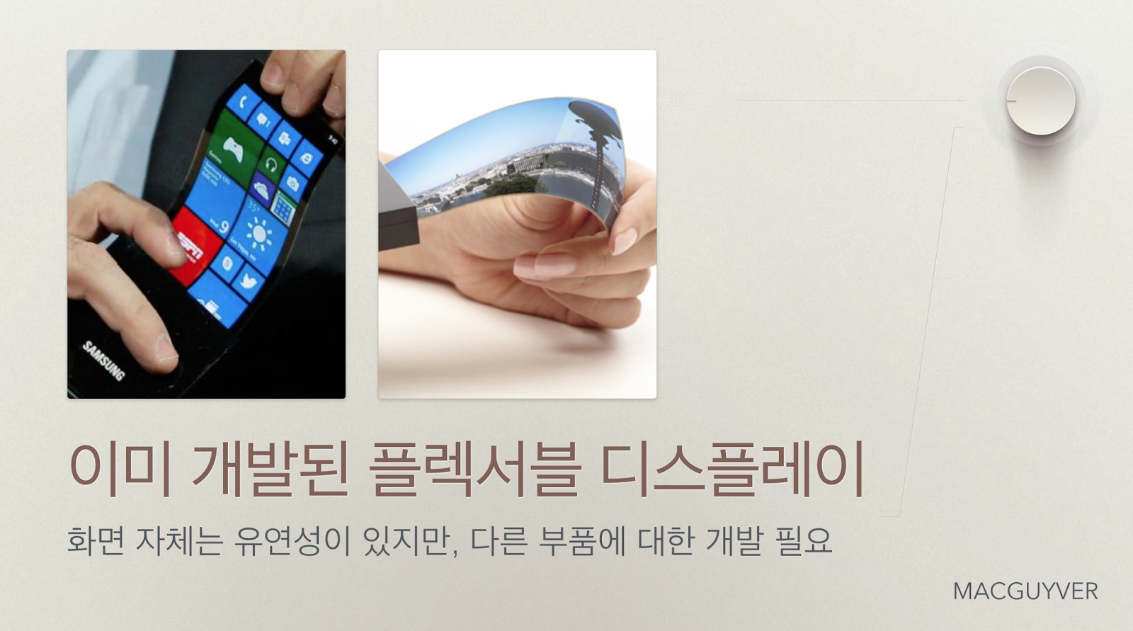 물론, 지금의 스마트폰의 크기에서 더 큰 화면이 나오고 그것을 통해 생산적인 업무를 하는 것은 발전적인 측면에서 보면 알맞을지 모른다. 그러나 엄청난 기술 개발 비용을 들이고, 기술적 난제를 극복해서 얻는 결과가 생각보다 만족스럽지 못하다면 어떠할까?