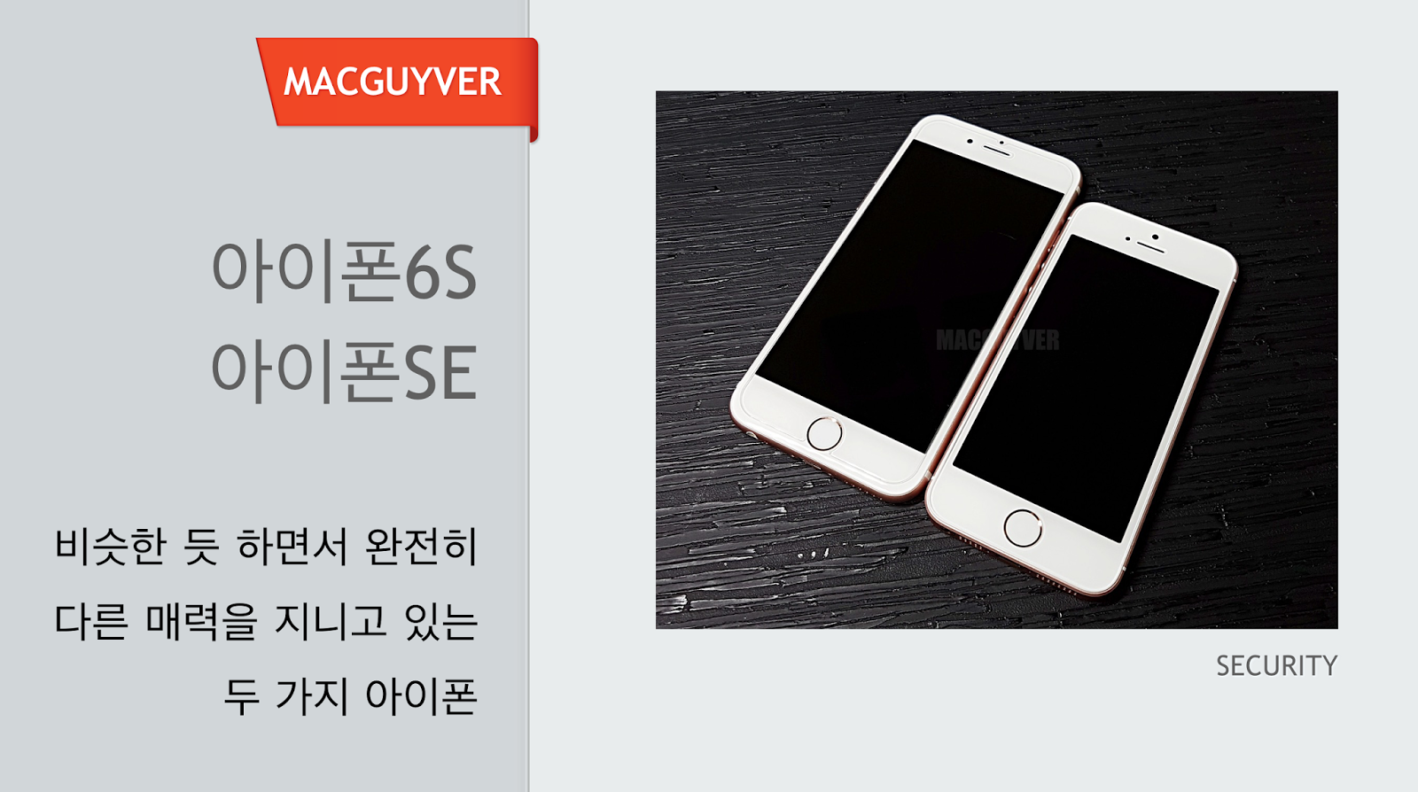 4인치와 4.7인치, 혹은 5.5인치의 화면 크기 차이에서 오는 휴대성과 컨텐츠 소비 도구로서의 접근은 다소 다른 방향성을 지니고 있기 때문이다. 아무튼, 두 기기 모두 완성도가 상당한 만큼 자신에게 맞는 디자인과 화면 크기의 아이폰을 선택하면 좋을 것 같다. - MACGUYVER.