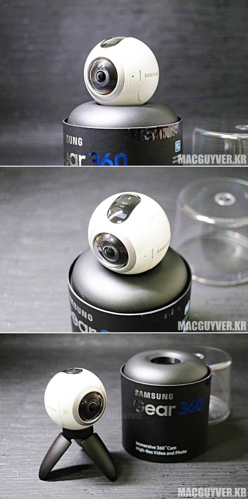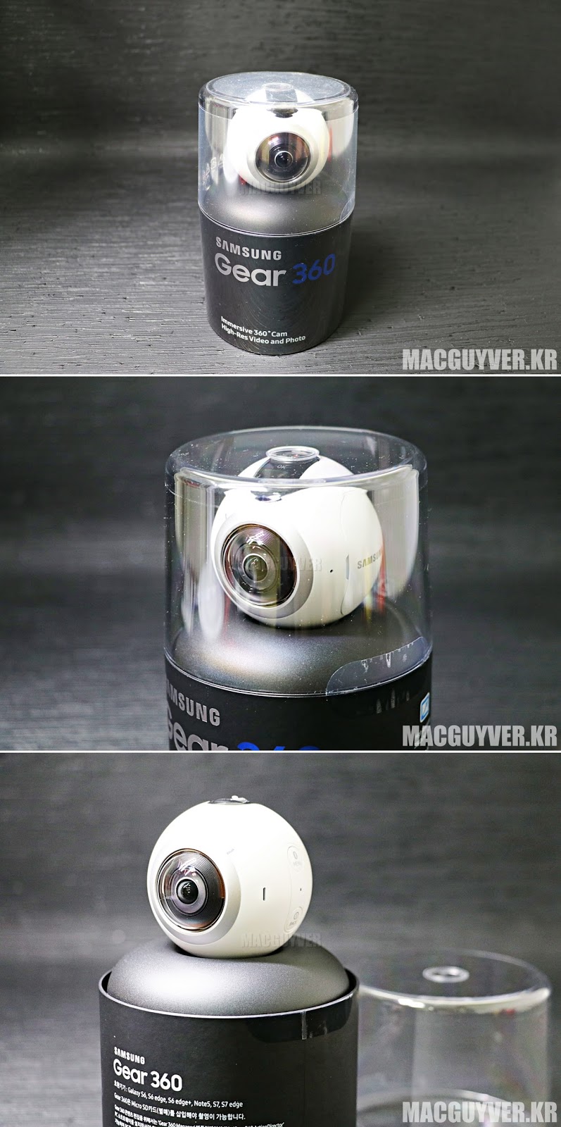 심플한 원형 박스에 담긴 기어 360 ▼