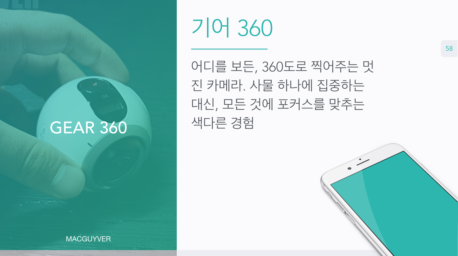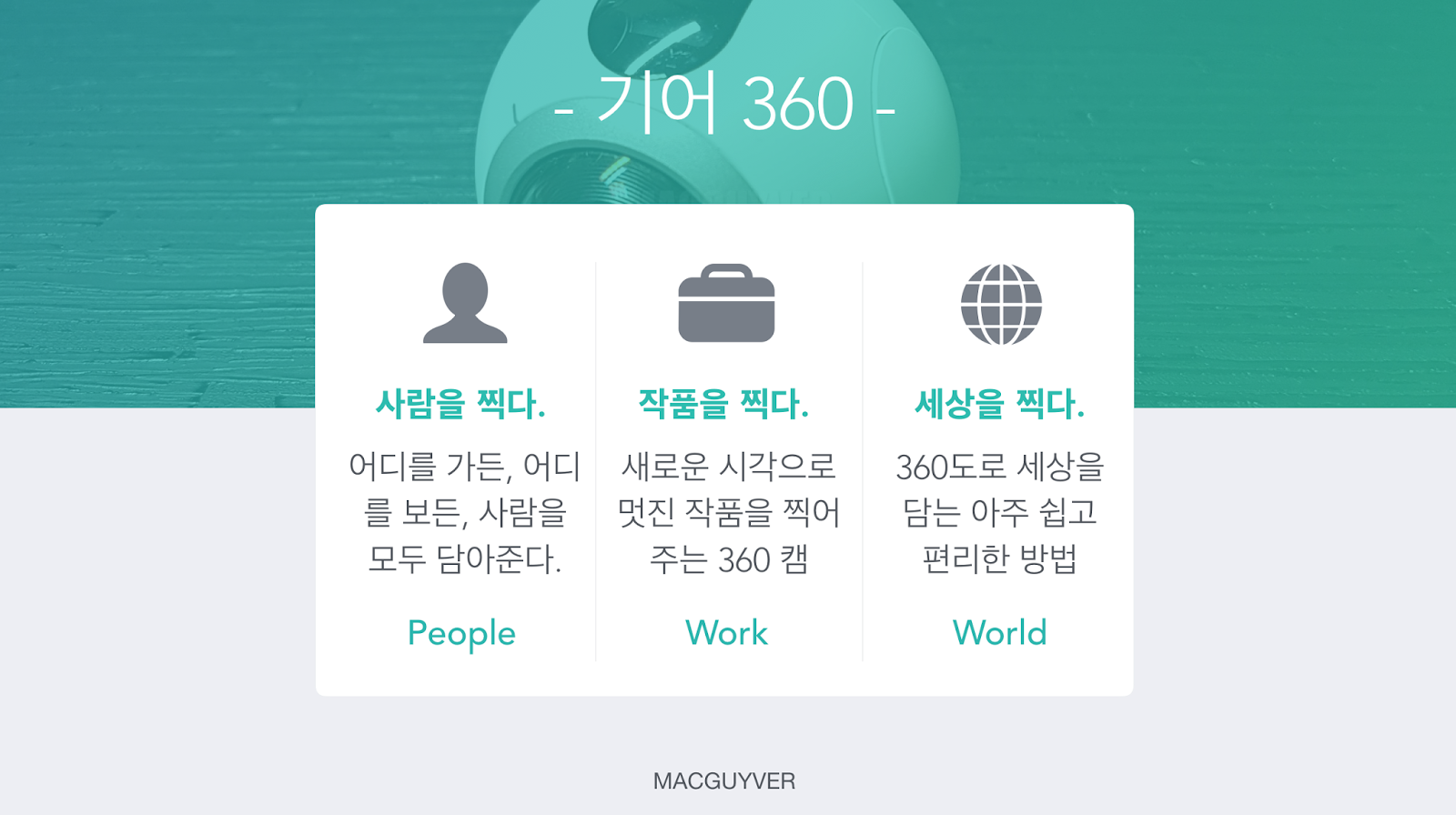 그래서 색다른 경험을 보다 빨리하고 싶은 분들이라면 360 카메라를 체험해보는 것을 추천하고, 아직은 부족함이 많다고 느끼는 분들이라면 조금 더 기다려보는 것도 좋을 것 같다. - MACGUYVER.