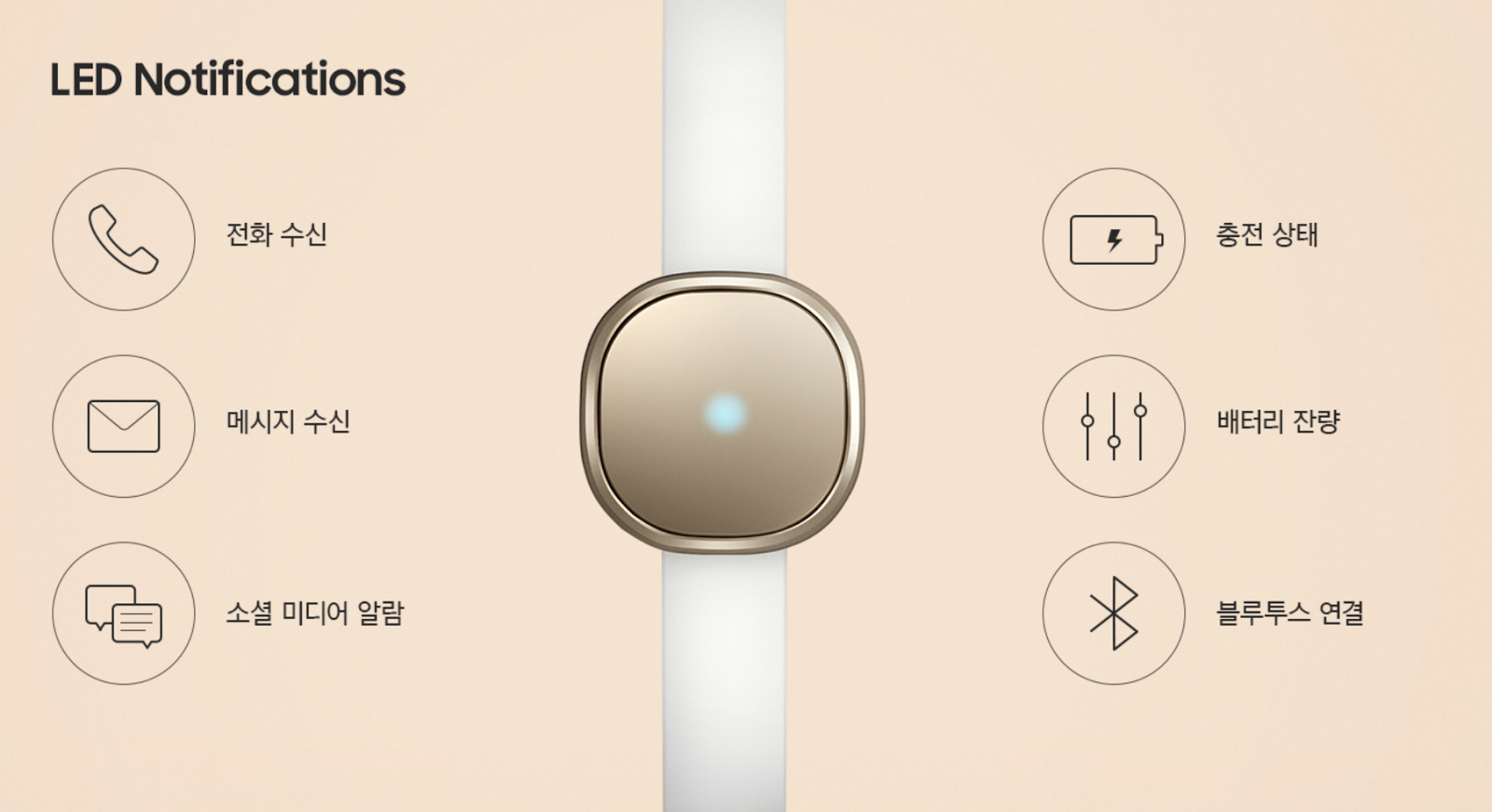 물론 착용해서는 안되는 것은 아니겠지만 전체적인 콘셉트가 ‘여성’들을 위한 제품이라는 점에서 남성들로서는 아쉬운 느낌이 들 것도 같았다. 또한 LED 알림 기능은 있지만, 진동 기능이 없어서 알림을 놓칠 가능성이 높기도 하다.