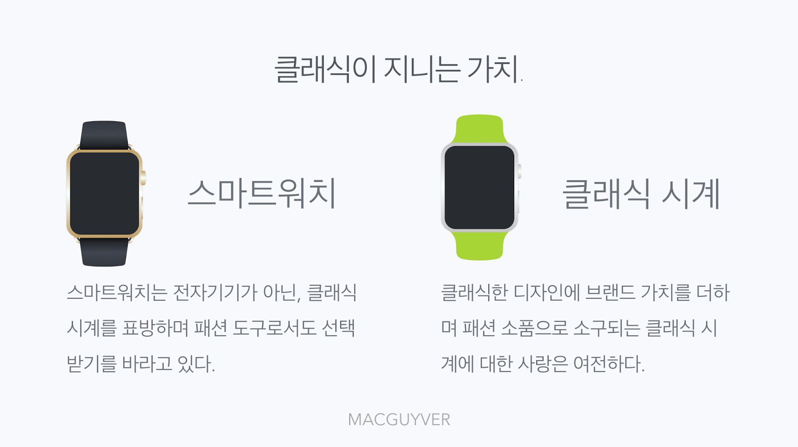 사용하기 전에는 느껴보지 못 했던 편리함이 있기 때문에, 한 번 스마트워치나 스마트밴드를 사용한 사용자가 다시 클래식 시계를 선택할 확률이 낮다는 점에서 클래식 시계는 큰 과제를 떠안은 것이다.