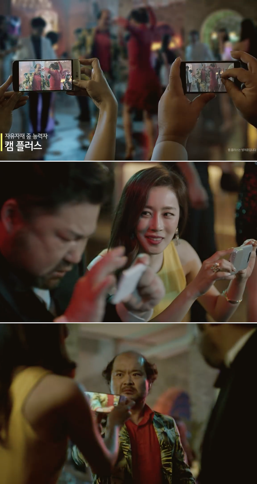 또한 카메라 기능 역시 강조가 되었는데, 아쉽게도 저조도에 강하다거나 사진이 잘 찍힌다는 점보다는, 단순히 광각에만 초점이 맞춰진 것은 아쉬웠다. 파티장이라는 배경으로 인해 저조도 + 광각의 이점을 어필할 수도 있었지만 광각에만 집중한 것이다.