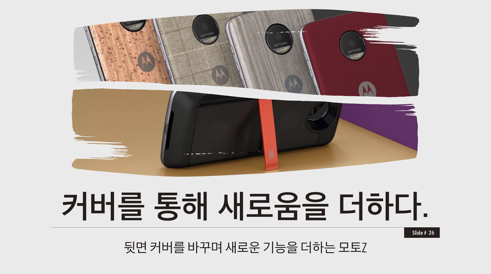모토Z 시리즈의 진짜 무기는 모듈인 것으로 보인다. 우선은 JBL 사운드 부스트를 통해서 블루투스 스피커가 필요 없는 훌륭한 스피커를 품기도 했는데, 뒤판을 교체하는 방식이라 신선하고 색다르다.