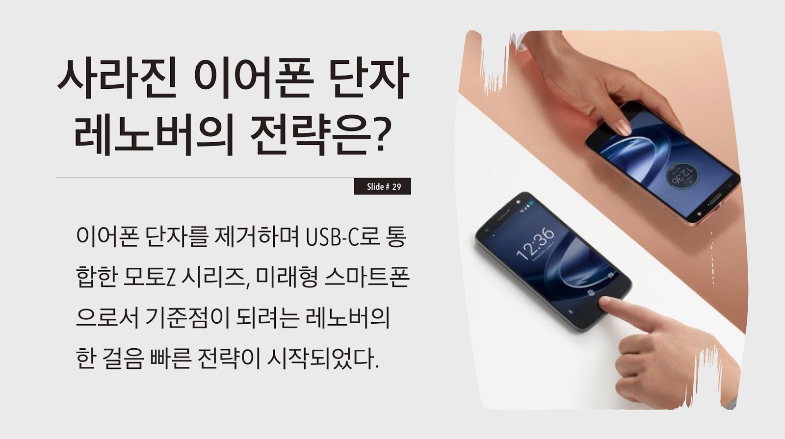 이에 더해서 이어폰 단자를 제거하고 USB-C 타입으로 통합한 것 역시 레노버가 먼저 한 수를 둔 것으로 보인다. 애플은 어쩌면 자체적인 라이트닝 단자를 고집할 가능성이 높은 만큼 범용성에서 모토Z가 앞서나가기 때문.