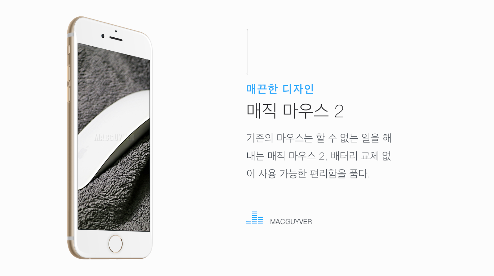 높은 가격과, 다소 부족한 그림감은 분명 아쉬운 부분이다. 하지만 맥과 함께 사용하기에 매직 마우스만 한 마우스가 없다는 점은 인정할 수밖에 없는 부분인 것 같았다. - MACGUYVER.