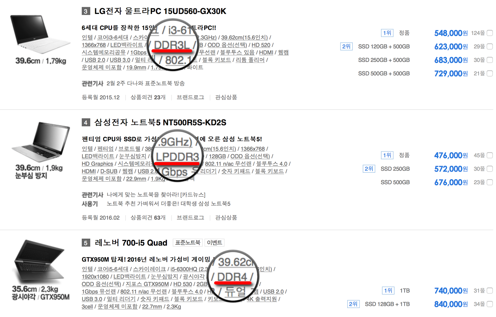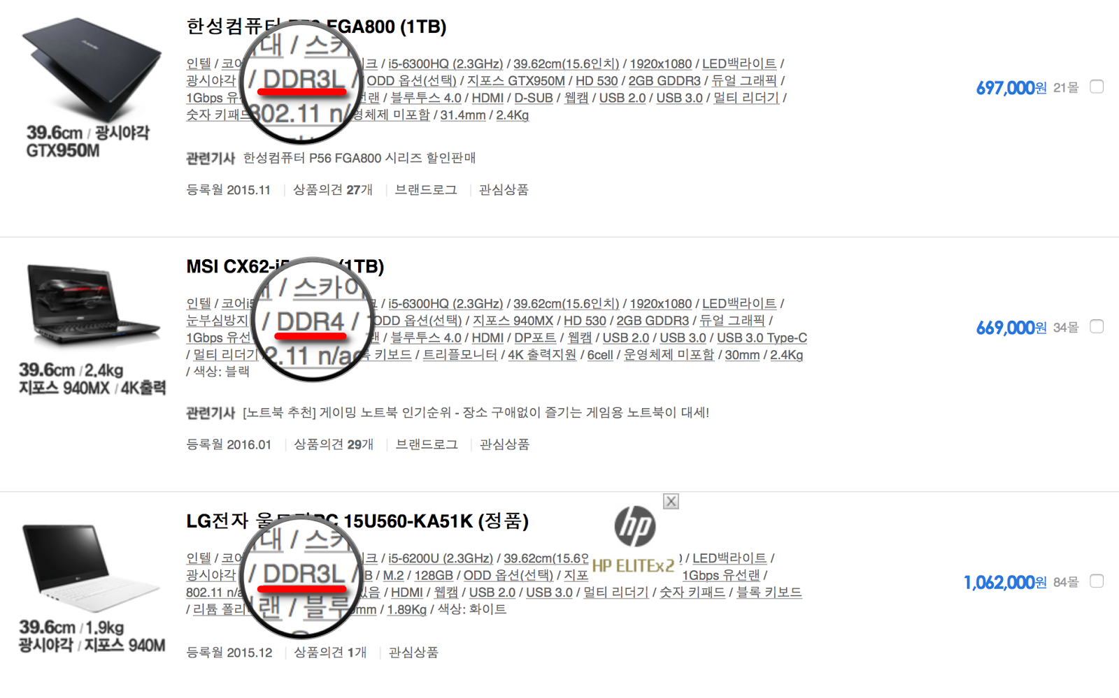 그런데, 이러한 일이 2016년 봄과 여름에 일어나고 있는 상황이다. 다름 아닌, 노트북 시장에서 신형 CPU는 내세우는 반면, 램에 대해서는 크게 홍보하지 않으면서 구형 부품을 탑재하는 제품이 많은 것이다.