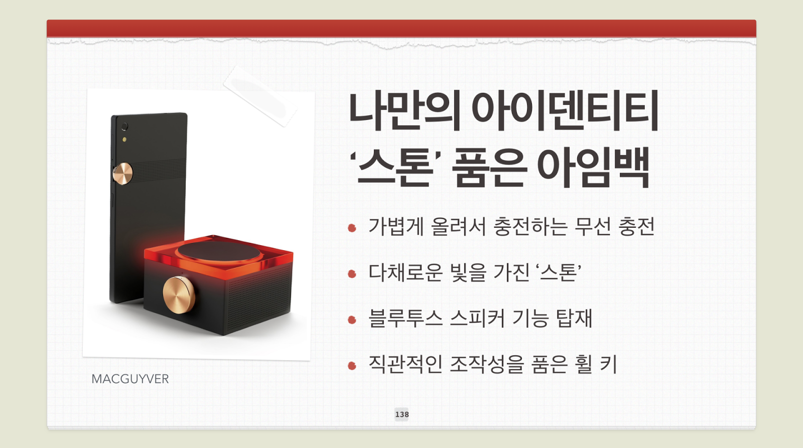무선 충전 기술을 활용해서 ‘스톤’과의 일체성 및 둘이 하나보다 낫다는 컨셉을 제대로 소화시키며 두 기기의 연동성을 강조한 점 역시 대중의 이목을 끌기에 충분했다.
