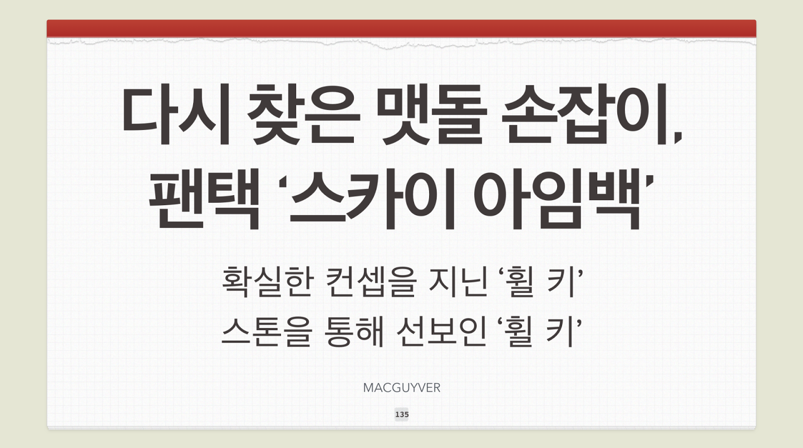 쉽게 말해 ‘갖고 싶은 중저가폰’이 탄생한 셈인데, 다시 되찾은 맷돌 손잡이는 IM-100의 뒤에서 조용하면서도 큰 존재감으로 ‘휠 키’가 되어서 소비자들을 기다리는 상황이다. 단연, 팬택의 귀환이 기대가 되는 이유가 아닐까 싶다. - MACGUYVER.