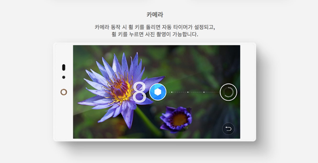 또한 제품에 또 다른 ‘특장점’을 심어주기 위해서 아날로그 방식의 ‘휠 키’를 도입했는데, 이 기능이 매우 놀라웠다. 이를테면 휠을 돌려서 100단계로 음악의 볼륨을 조절하거나 이외에도 사진 촬영과 동영상 재생 시에도 활용하도록 한 것이다.