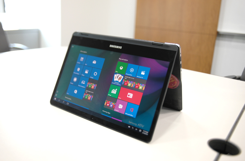 삼성 노트북9 스핀은 이름에서처럼 360도로 꺾이는 디자인을 가진 노트북이다. 기존의 노트북 대비 가능성이 더해진 것인데, 일반적인 노트북의 구조에서 터치 입력이 가능하더라도 사용에 있어서 불편함을 줬다면, 이 제품은 완전히 다른 방향성을 가진 것이다.