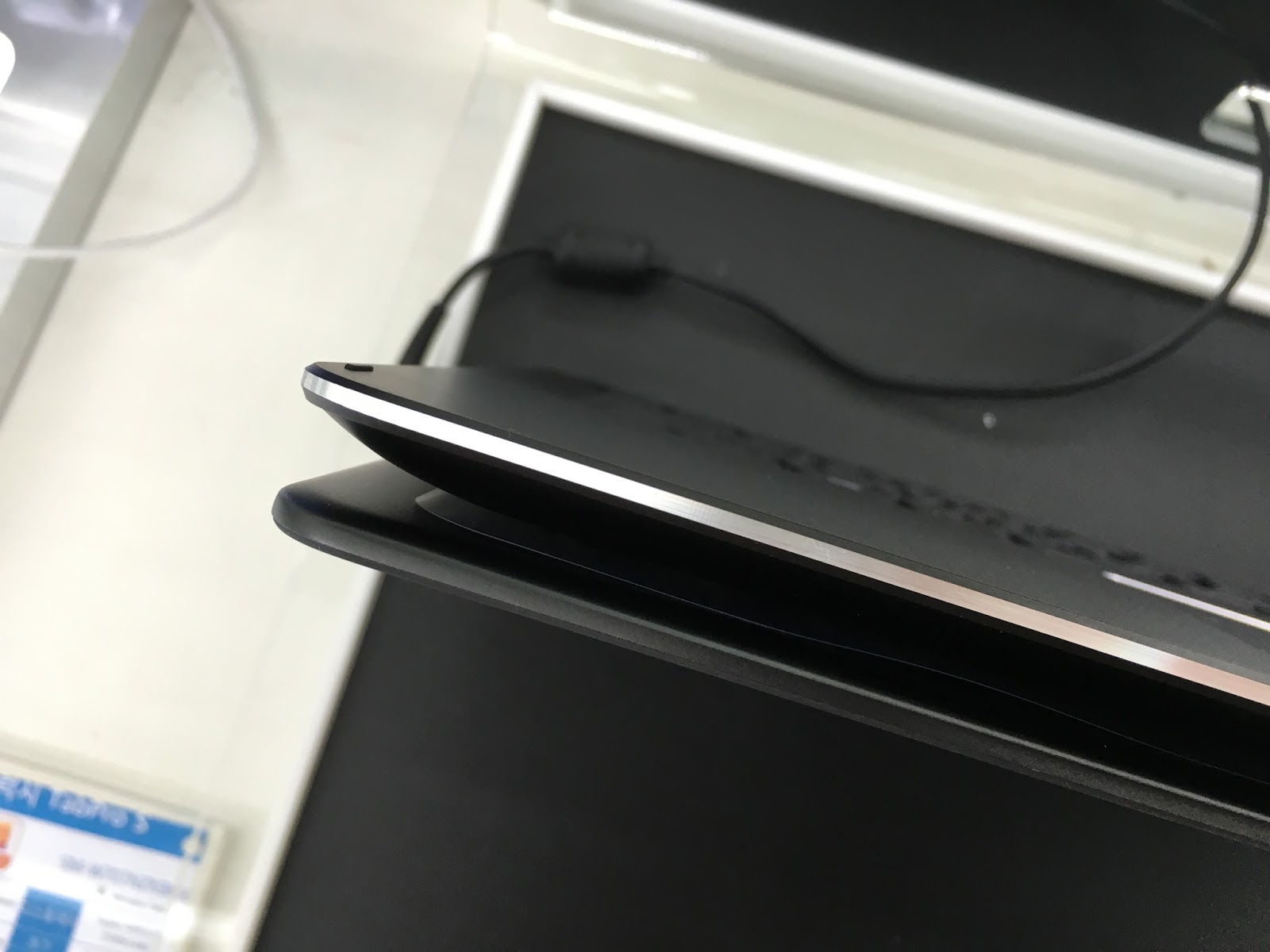 우선, 첫인상은 ‘심플’ ‘깔끔’이었는데, 기존의 노트북에서 볼 수 있는 군더더기가 없었고, 메탈 디자인으로 측면이 특히나 매우 날카롭고 칼같이 잘려진 느낌이었다. 쉽게 말해 갤럭시노트4와 비슷한 측면 디자인이었다.