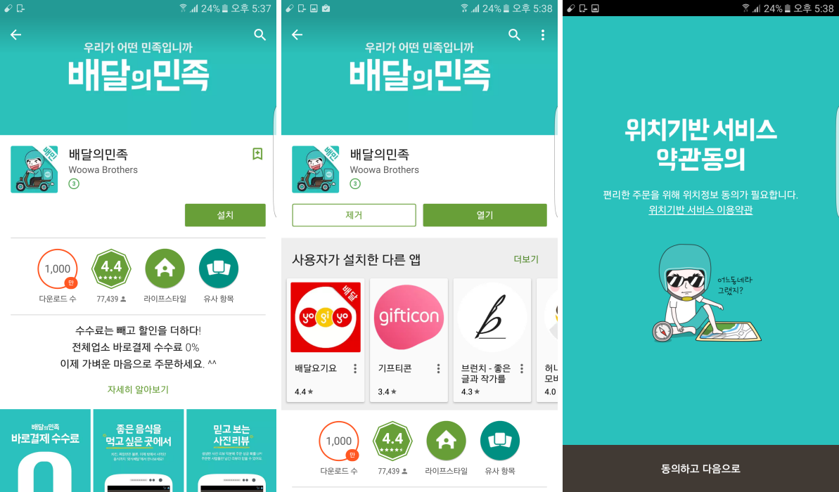 앱 마켓에 검색하면 등장하는 '배달의 민족' ▼