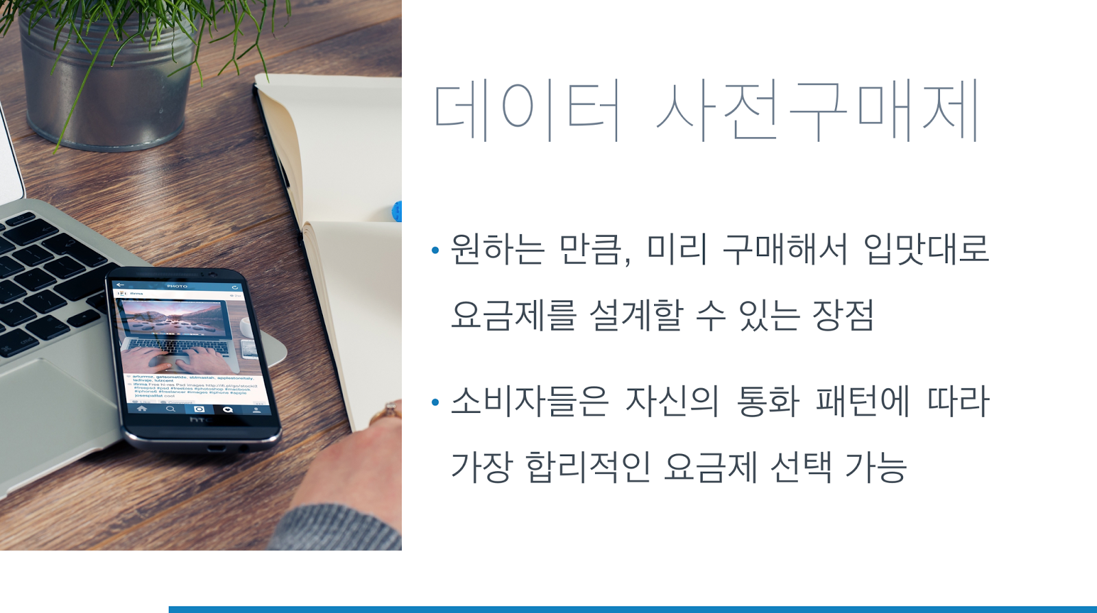 현재 거론되는 데이터 사전 구매제는 분명 매력적인 정책인 것은 맞다. 대용량이라 하더라도 단가가 상당히 낮기 때문에 현재보다도 훨씬 더 많은 데이터를 더 저렴한 가격에 제공할 수 있어서 그로 인해서 가입자들을 더욱 많이 유치할 수 있는 것이다.