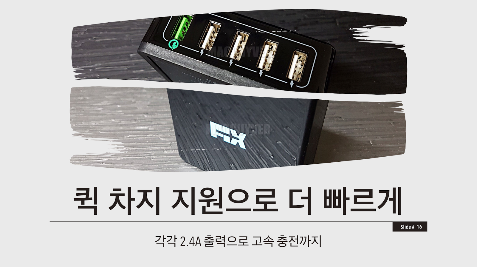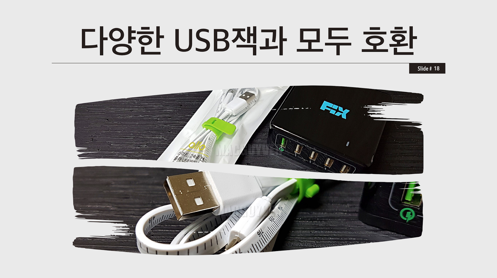 퀵 차지 지원으로 더욱 빠르고 안정적인 충전이 가능한 FIX 큐 멀티 충전기 ▼