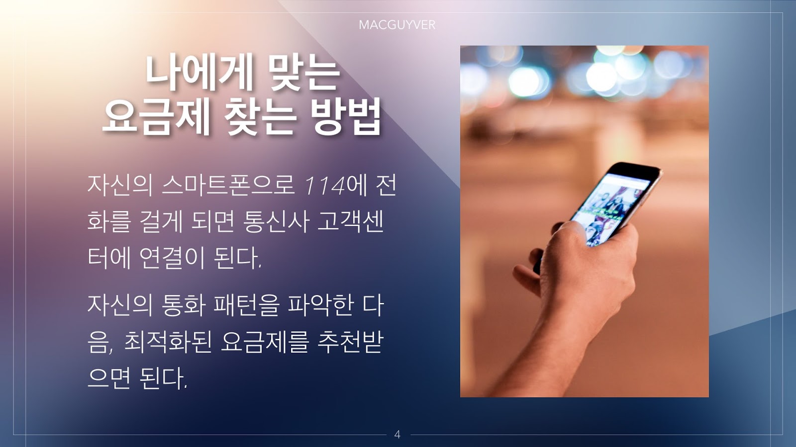 간단하다. 자신의 스마트폰으로 114를 눌러서 통화를 하면 각 통신사의 고객센터로 연결이 되는데, 상담원에게 자신의 지난 3개월 혹은 6개월간의 통화 패턴을 알려달라고 하고 그에 맞는 최적의 요금제를 설명해 달라고 하면 된다.