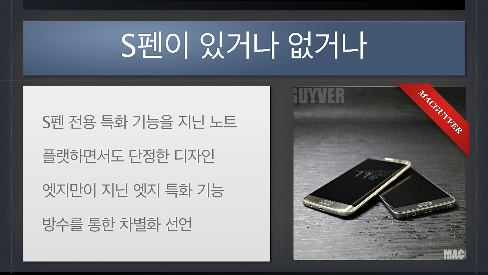 그렇다면, 갤럭시노트5와 갤럭시S7 엣지의 차이는 무엇이라 볼 수 있을까? 둘 다 사용해본 입장에서 서술하자면, 두 기기 모두 매력적인 것은 맞다. 하지만 분명히 S펜을 제외한 기기 자체의 매력만을 놓고 보자면 갤럭시S7 엣지가 더욱 매력적이다.